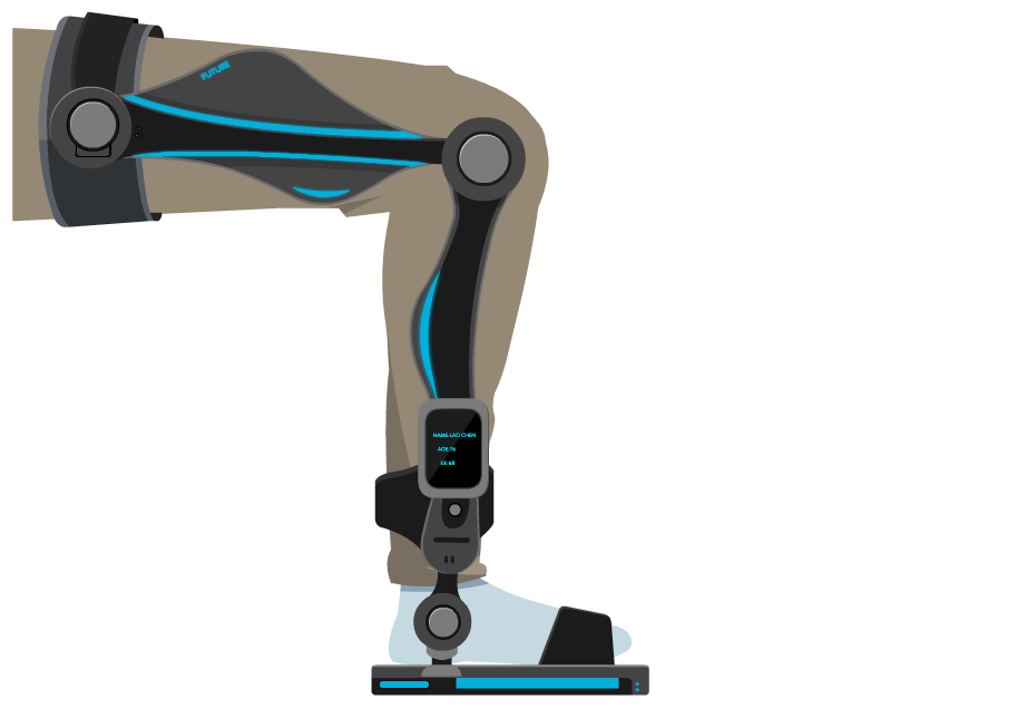 辅助康复机械关节是一套能够增强人体机能的外骨骼穿戴系统。借助该康复机械关节,可引导病患进行具有力反馈的运动训练,促进病患骨骼组织自动恢复骨细胞活性,增强骨质和肌肉密度,避免骨头的肌肉的萎缩,有效加快术后恢复,其中,机械关节的力反馈大小可根据医嘱进行调节,以适应不同病情的需要。与目前市面上角度康复器械最大的不同就是力控守恒,确保患者肢体健康安全。