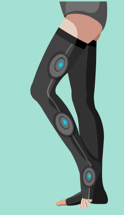 利用足部压力精确感知,穿着者在做走路、跑步、攀登等运动时,收集脚接触地面时间、压力和频次等信息,通过无线蓝牙实时发送信息到用户的手机,可以指导用户正确的走路、跑步、运动方式,并通过读取压力指数,指导患者下肢的负重力度,促进患者康复,且同时具备抗血栓压力袜功能,预防下肢静脉血栓。